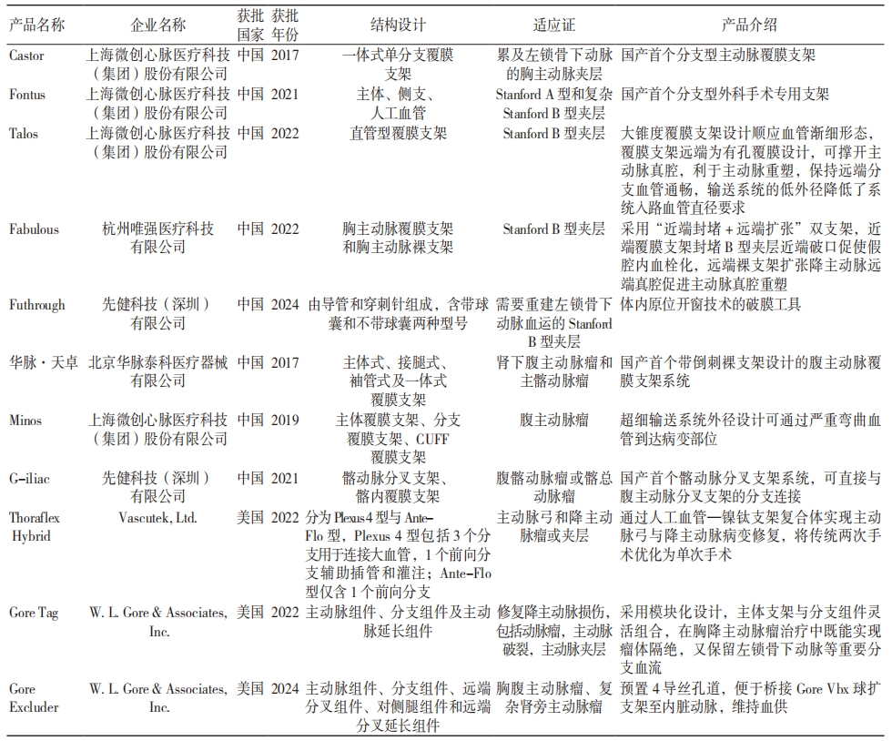 表 3 中美获批的血管内假体创新器械