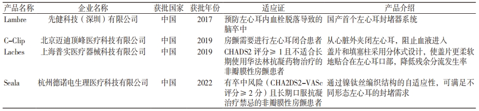 表 5 中国获批的左心耳封堵器创新器械