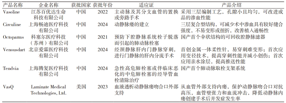 表 7 中美获批的其他无源心血管植介入创新器械