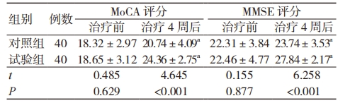 注:与同组治疗前比较,aP< 0.05。MoCA 为蒙特利尔认知评估量表,MMSE 为简易智能状态检查量表。